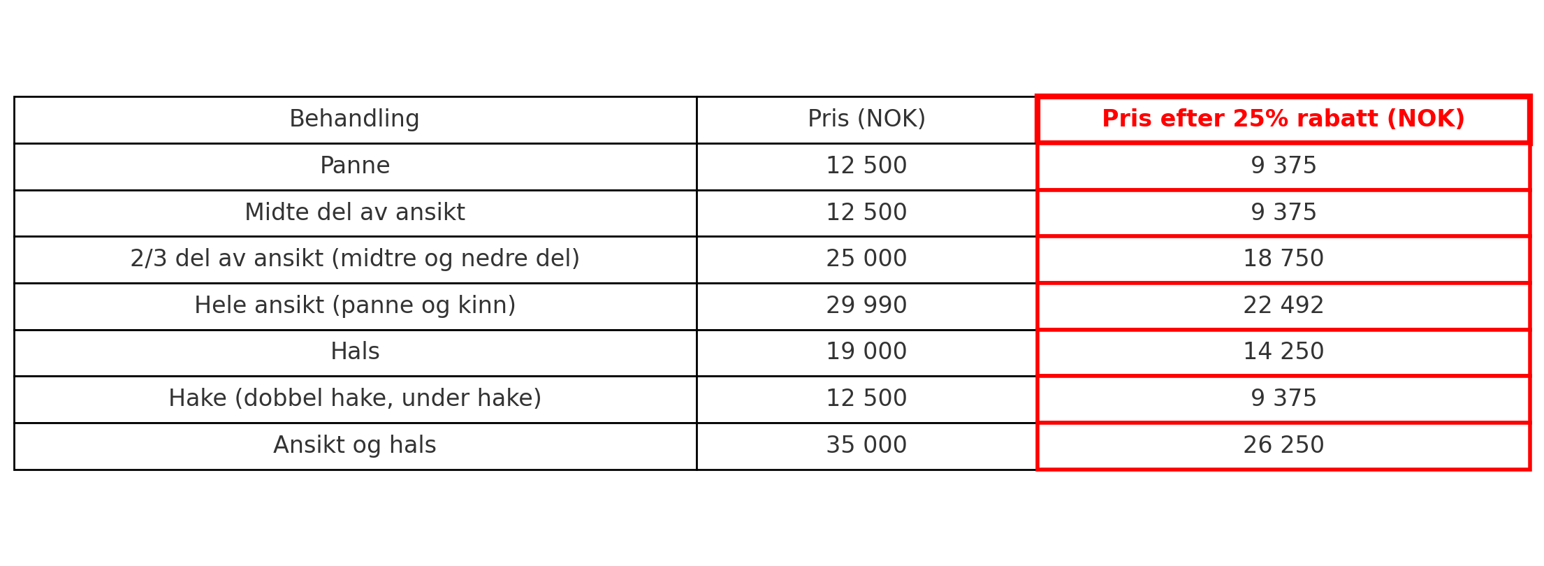 NB! Alle medisinske behandlinger har potensial for risiko, bivirkninger og mulige komplikasjoner. Resultatet varierer fra person til person. Les mer om bivirkninger med mer lengre ned på denne siden.